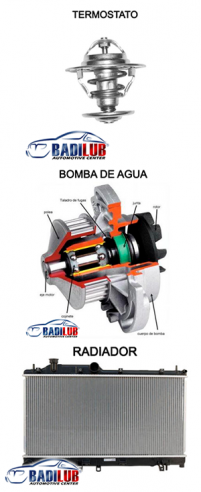 El refrigerante inicia su circulación en la bomba de agua. El impulsor de la bomba de agua utiliza la fuerza centrífuga para hacer circular refrigerante del radiador e impulsarlo al monoblock del motor. Las bombas usualmente son impulsadas por la banda de tiempo o cadena de tiempo. Ahora en día, inclusive hay bombas impulsadas por electricidad. Si la bomba de agua experimenta una fuga por el sello, una fractura en el cuerpo, un impulsor roto o un mal funcionamiento del balero, esto podrá afectar todo el sistema refrigerante ocasionando que el vehículo se sobre-caliente.