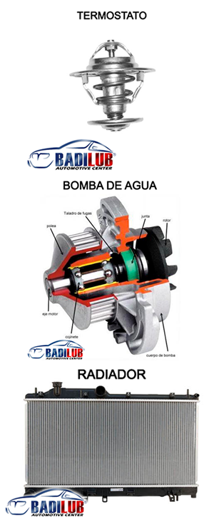 El sistema de enfriamiento es un sistema constituido de partes y refrigerante que trabajan juntos para controlar la temperatura de operación del motor y obtener un óptimo desempeño. El sistema tiene conductos dentro del monoblock y cabezas del motor, una bomba de agua y la banda que la impulsa para que circule el refrigerante, un termostato para controlar la temperatura del refrigerante, un radiador para enfriar el refrigerante, un tapón de radiador para mantener la presión en el sistema y mangueras para conducir el refrigerante del motor al radiador.
